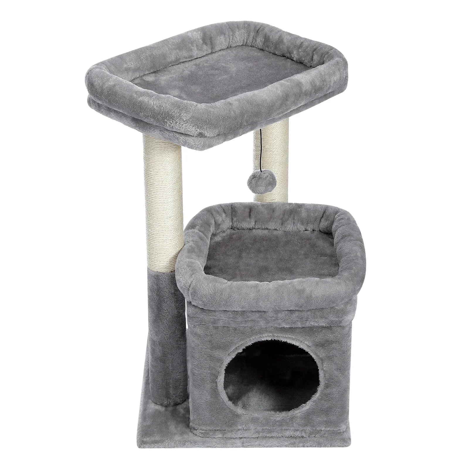 Cat Tree Cat Tower for Indoor Cats with Private Cozy Cat Condo Natural Sisal Scratching Posts and Plush Pom-pom for Small Cats