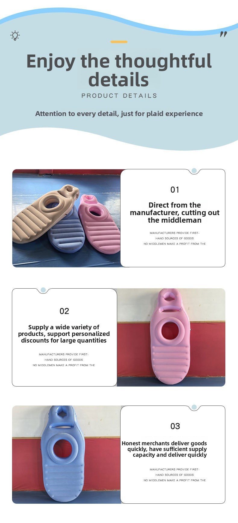 Comfortable Design: PVC inflatable product with a sealed airbag structure, providing soft and comfortable use.