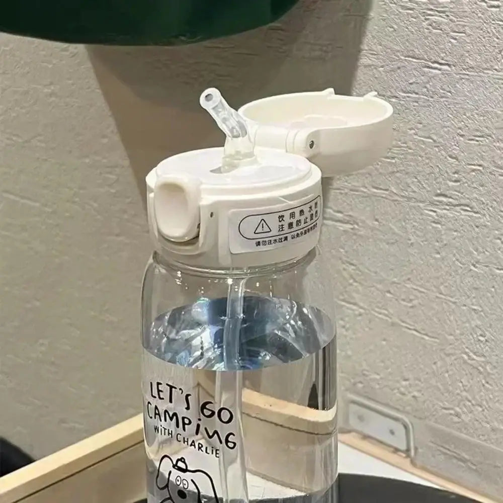 Plastic Water Bottle Water Cup With Straw Simple Large Capacity Portable Drop Resistant And Portable Cup Cartoon Ice Suction Cup